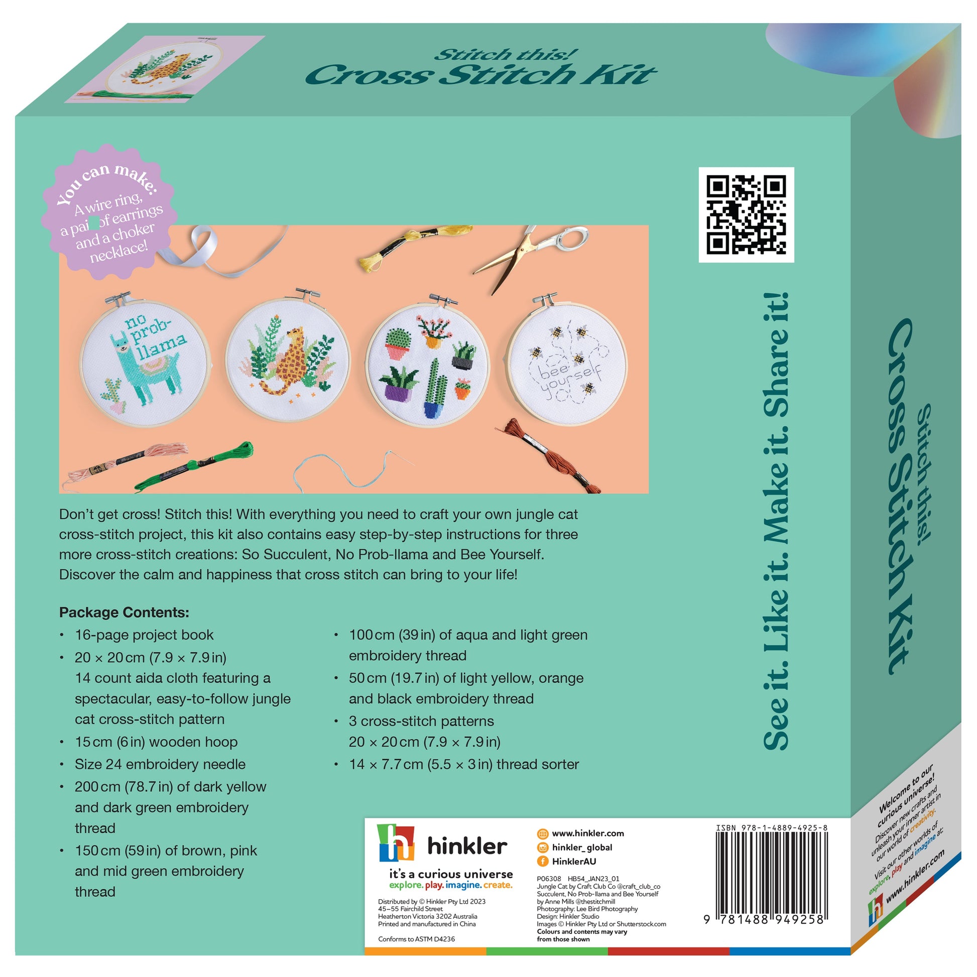 This kit has all a crafter needs to complete this on-trend jungle cat cross stitch. Learn the basic stitches in the full-colour and diagrammed instruction book and follow the clear pattern in this simple form of embroidery that is trending among modern makers and crafters. Their stitching fingers will be itching to go out and complete the full set of projects in this attractive kit!