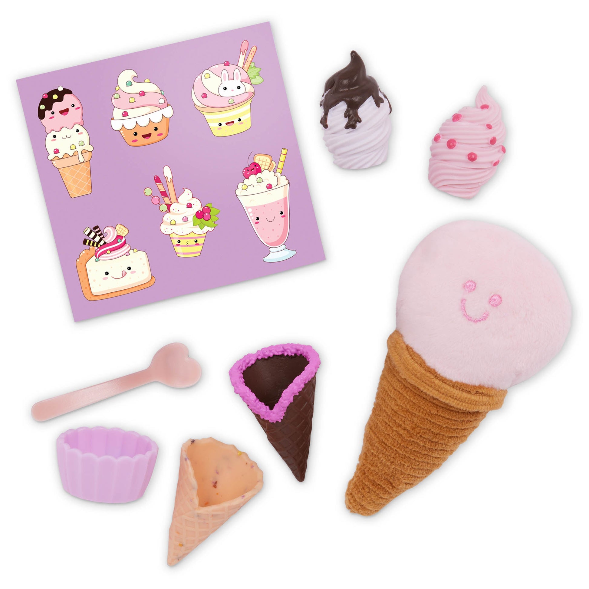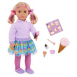 Serve up sweet fun with Andy! This Our Generation 18-inch doll has a huggable soft body and lifelike features to delight doll fans during playtime. Her light-brown eyes open and close, and her long, multicolored hair is fun to style in many ways! Andy arrives in a cute ice cream-themed outfit. She wears a dress with a rainbow skirt and hooded top, sparkly tights, 2 pom pom hair elastics, and bright purple shoes. Plus, she comes with bonus accessories like 2 waffle cones, 2 swirls of ice cream, a bowl, a spoon, a sheet of real stickers, and an ice cream plush for added storytelling. When it’s time for dress-up, her outfit has easy-open closures to quickly put on and remove. So you can mix, match, and create more stylish looks on any adventure! Our Generation dolls make a great gift for kids ages 3 years and older (small parts), encouraging them to imagine their own unique stories.