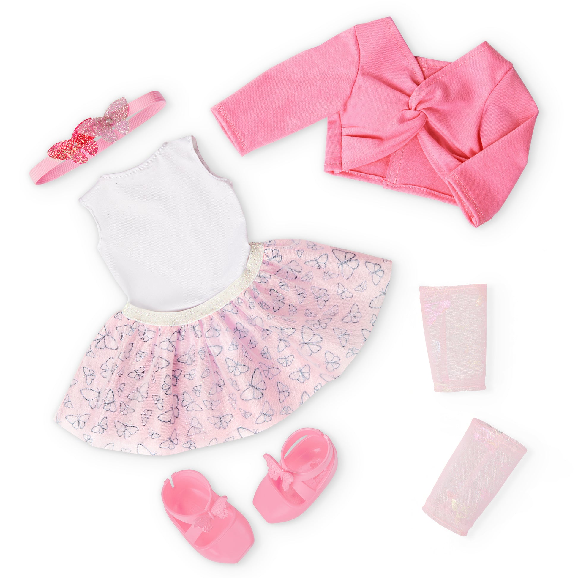 Leap into dancing fun with Our Generation doll Mika! This 46cm ballerina doll has a soft, huggable body and lifelike features to delight doll fans as they engage in hours of storytelling. She has beautiful hazel eyes that open and close, cute freckles, and light-brown hair accented with pink highlights for colourful styles. Ready to shine, she wears a pretty ballet outfit with lovely butterflies all over to showcase her personality. And for kids who love dress-up, Mika's easy-change outfit inspires mixing and matching to create even more fashion trends for endless adventures! Our Generation dolls make a great gift for kids ages 3 years old and up (small parts), encouraging them to dream up their own unique stories.
