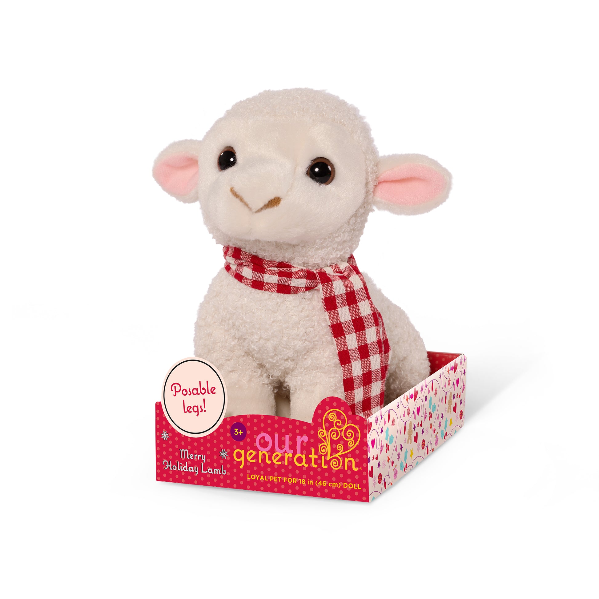 Celebrate the festive season with Our Generation Holiday Lamb Merry! This lovable 6-inch lamb plushie has soft plush fleece with fuzzy curls for added cuteness. With a g-lamb-orous scarf and bendable legs, Merry is perfect for imaginative play as kids create fun poses and holiday displays. Plus, kids can remove Merry's scarf to play out countless adventures all year round, making it a sweet addition to their pet collection! Our Generation plush pets make a great gift and stocking stuffer for kids ages 3 years old and up (small parts), nurturing a love for animals. Our Generation dolls sold separately.