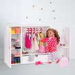 Holds little outfits and big dreams. Feel free to mix, match or intentionally clash. Like most things, it’s all up to you. 1 wooden wardrobe with vanity, 1 stool and 1 OG Outfitters catalog. 18" doll, clothes and accessories sold separately.