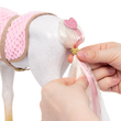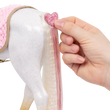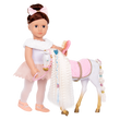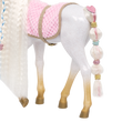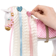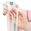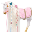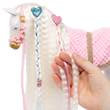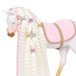 Let your creativity shine with the Our Generation Andalusian Hair Play Foal! This 12-inch styling horse has a white body with golden hooves, an ultra long white mane and tail, and features colorful accessories to add majestic hairstyles. Start by brushing the mane and tail and accessorize with the heart-shaped hair extensions. They easily clip to the horse’s mane or tail! Follow the styling booklet to learn how to give your foal the prettiest braids and ponytails, and use the colored elastics to create bright patterns! Then grab your equestrian bestie and hop on the comfy pink saddle to gallop through the countryside in style!