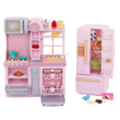 Your little chef will get inspired to cook their favorite foods with their 18-inch dolls in the Our Generation Gourmet Kitchen! This 53-piece pink kitchen playset includes a complete kitchen unit with an oven, dishwasher, and microwave. Plus, there’s lots of counter space, cupboards, and shelving for your dolls to store all of the realistic accessories and play food! Where is the best place for the refrigerator? You can position it wherever you like! There are lots of interior shelves and a bottom-load freezer for keeping all of your doll’s groceries fresh. Lifelike cooking items make playing kitchen even more fun. Our Generation accessories make a wonderful gift for kids ages 3+ (small parts), encouraging them to create their own unique stories. Compatible with most 18-inch dolls and accessories. Dolls sold separately.