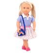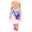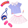 Brighten up your 18-inch doll’s school days with the Our Generation Rainbow Academy outfit! Dress your bestie in the light-blue polo top with the rainbow crest and complete the ensemble with the graphic skirt. It has mini rainbow bunny prints! Carry your doll’s favorite items on her way to class with the true-blue rainbow purse. It zips open to hold the colorful stacking pen, and it comfortably hangs over your doll’s shoulder as she travels to class! This outfit features easy-open closures to quickly put on and remove, and it mixes and matches with many Our Generation clothing sets to give your learners bright styles for their days at Awesome Academy!