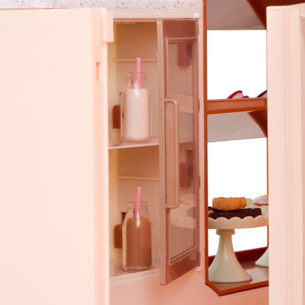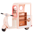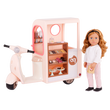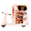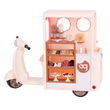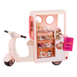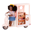 Scoot into delicious adventures and serve up sweet fun with the Our Generation Chip Chip Hooray Cookie Scooter playset! It features a three-wheel design, movable handlebars, and smooth-rolling wheels for dolls to deliver treats on the go. Display the 50+ realistic play food accessories on the shelves, counter, and interior mini fridge. Then use the opening door in the back of the scooter to enter the cookie stand to greet customers. This doll-sized vehicle has all the ingredients for foodie fans to explore their imagination like never before! Includes Our Generation Chip Chip Hooray Cookie Scooter with play food accessories; dolls sold separately. Measures approximately 21? (H) x 10? (W) x 25? (D). Compatible with most 18-inch dolls and accessories.