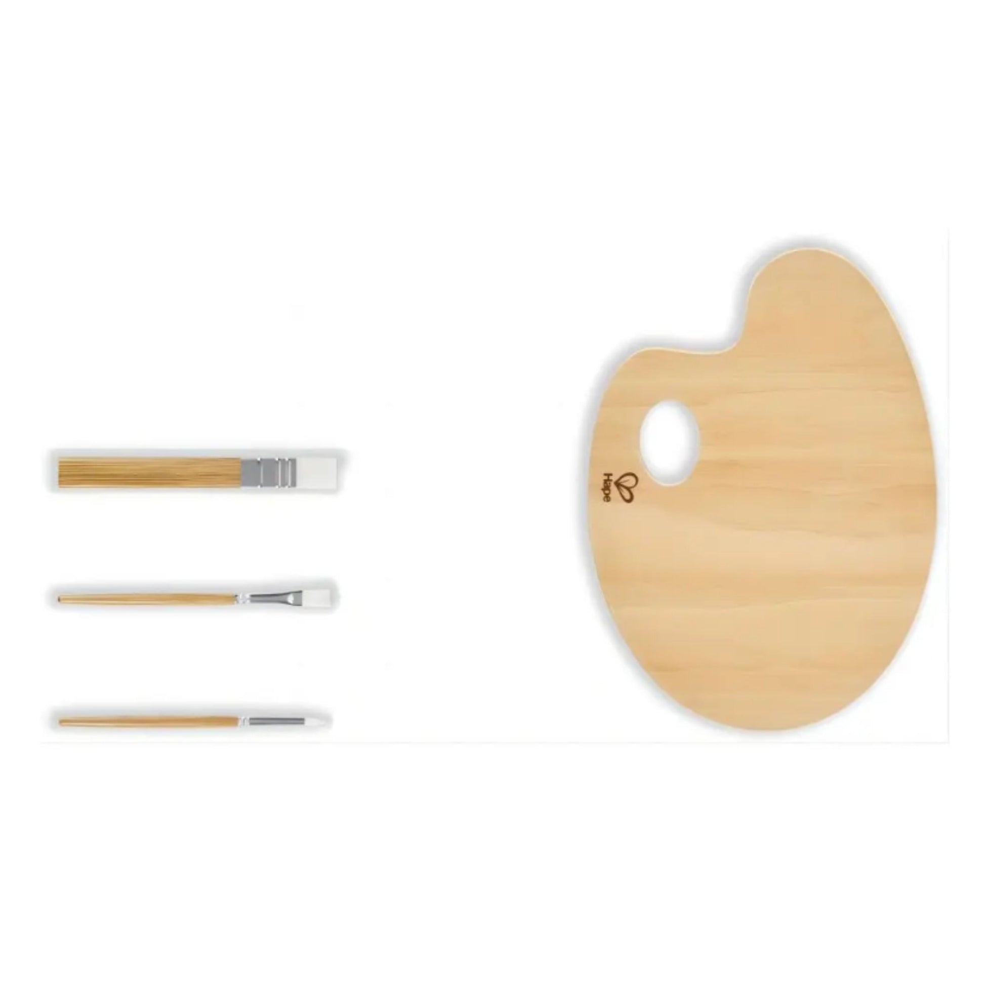 SUSTAINABLY MADE: The palette in this art set is made from durable wood and features a smooth finish, while the brushes are made with bamboo from Hape’s very own bamboo forest.