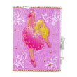 The puffy 3D ballerina sits on a transparent cover surrounded by butterflies, which is layered on a sparkling glitter base. The interior pages are lined to aid in neat handwriting.