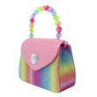 This iconic Pink Poppy Stardust Unicorn Handbag is fashioned with a glittering rainbow fabric and a candy pink iridescent flap decorated with a heart-shaped gem. Completed with a rainbow beaded handle, magnetic stud for easy closure and an additional cord shoulder strap for hands-free play, it is the perfect accessory for any occasion.