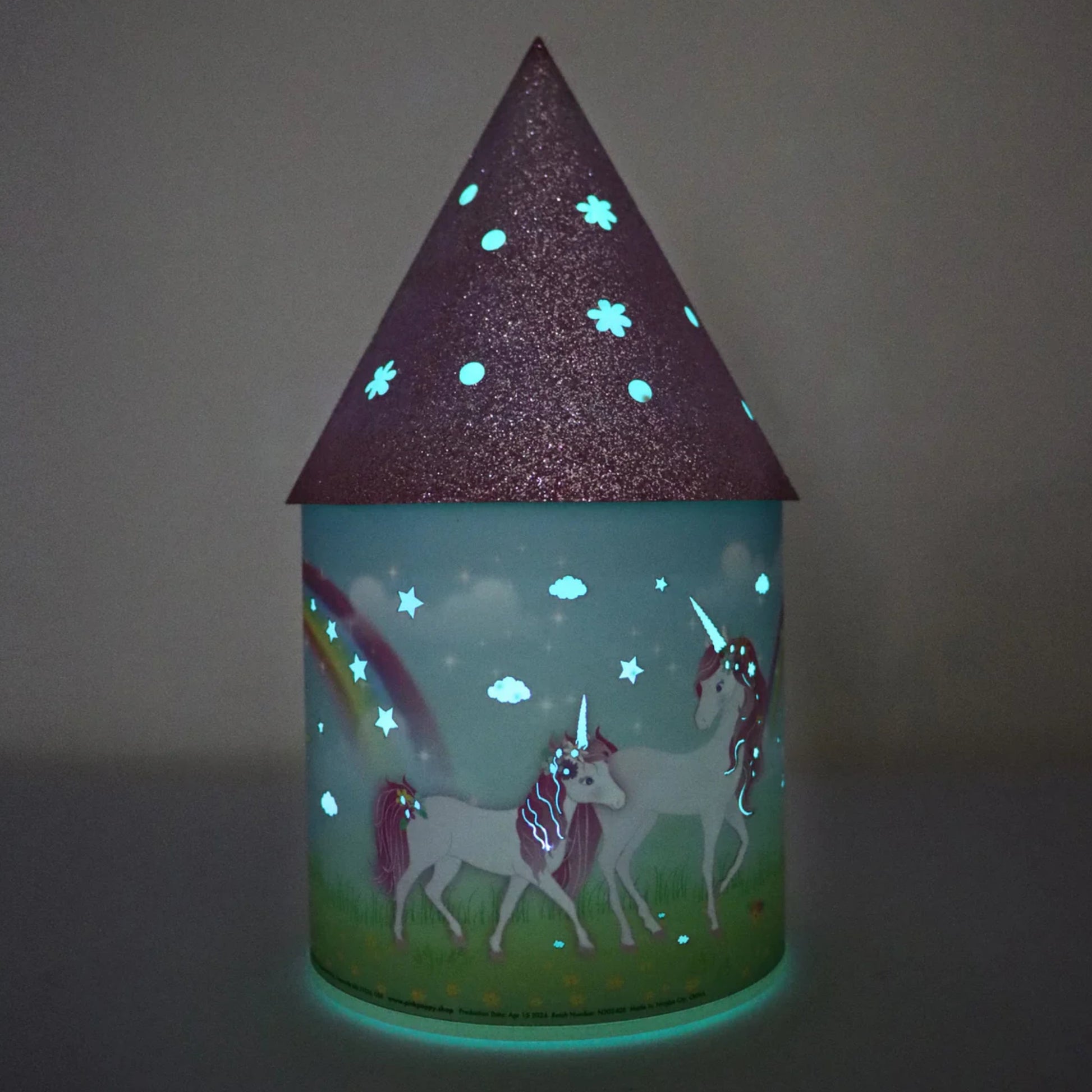 Pink Poppy’s limited edition Stardust Unicorn Colour Changing Lantern brings a sense of magic to all kids. This soft illuminating light-up LED Lantern is designed to comfort children as they sleep. Switched on, watch as the light smoothly transitions between a rainbow of colours illuminating a dark room. Switched off it acts as a decorative piece with a glittering roof displaying beautiful illustrations. Completely safe for little hands all day and all night long.