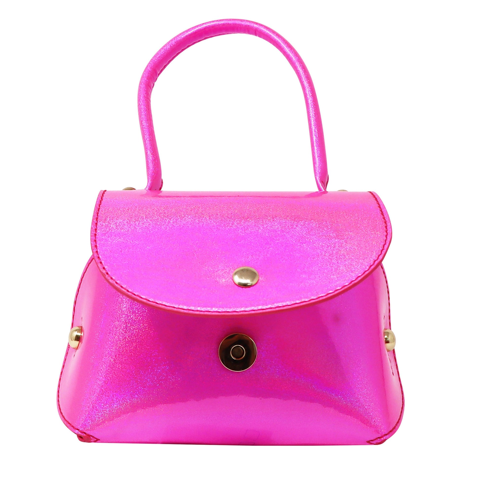 Add a touch of pink to your outfit with this limited-edition fashion Vibrant Vacation Press Lock Mini Bag! It is made from high-quality metallic hot pink fabric. Features a press-lock closure and a long handle for hands-free play.