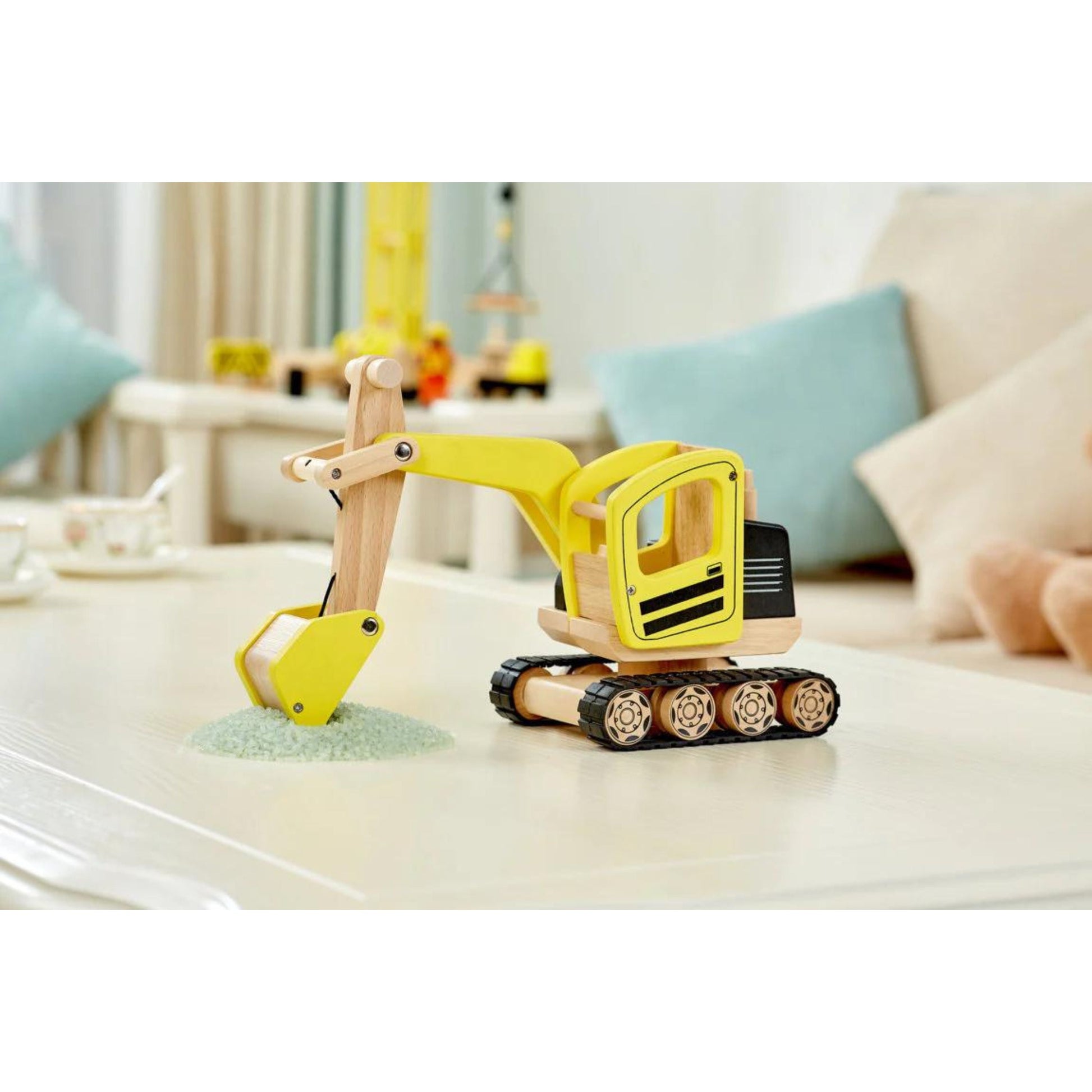 his wooden Digger will provided hours of entertainment in the house or garden. Crafted from beautiful smooth rubberwood. Children can create a realistic building site with our exciting range of authentically detailed construction vehicles and assessories