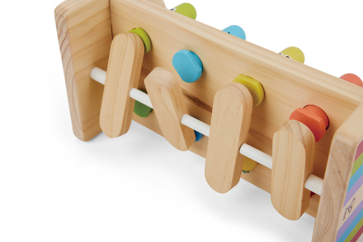 Children can hammer away with the bright colours, learning cause and effect and developing key motor skills. Toddlers can hammer the vibrant wooden bars with the mallet, creating a seesawing surprise as the opposite bar pops up. Packed with numbers and stars, its a playful way to combine action and learning.