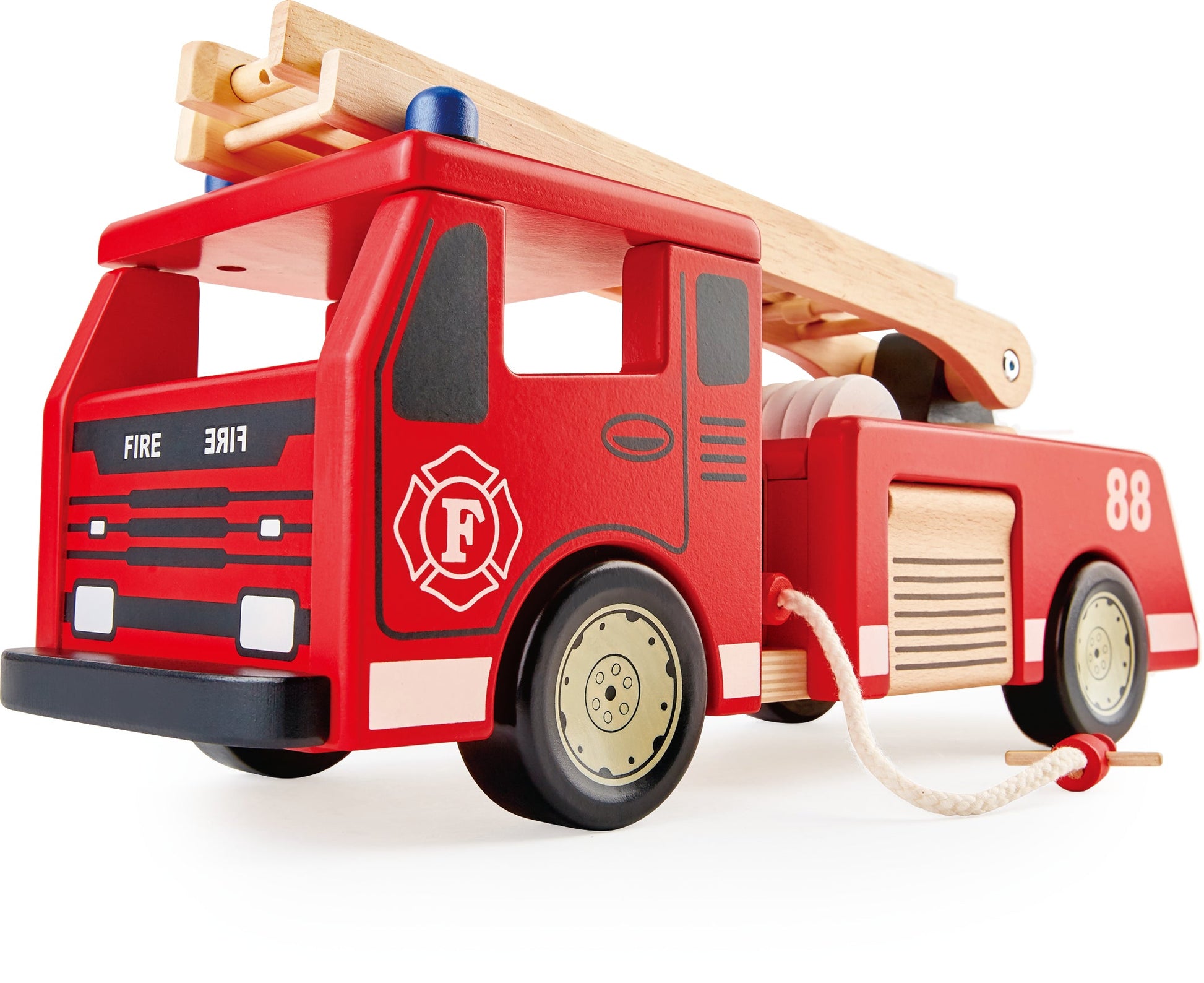 beautiful red fire engine for ages 3+. Includes an extendable ladder, a windable fire hose with a nozzle. You can rest assured that all Pintoy toys are tested to ensure physical and mechanical safety to give you added peace of mind.