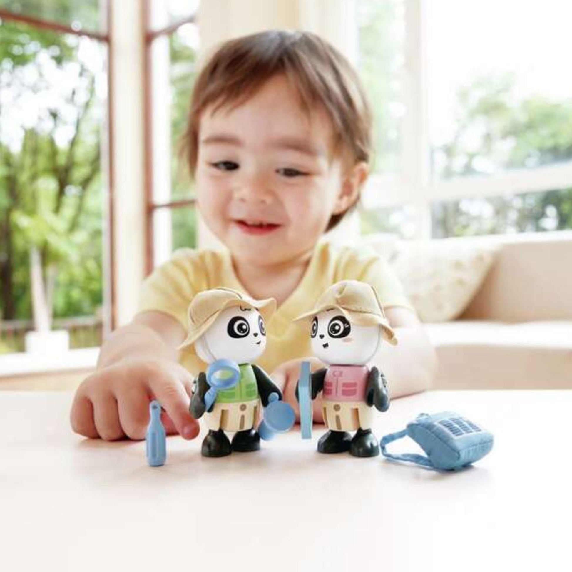 PLENTY OF ACCESSORIES: This set includes two panda figurines, one tablet, one school bag, two hats, one magnifying glass, one water bottle, one flashlight and one leaflet.