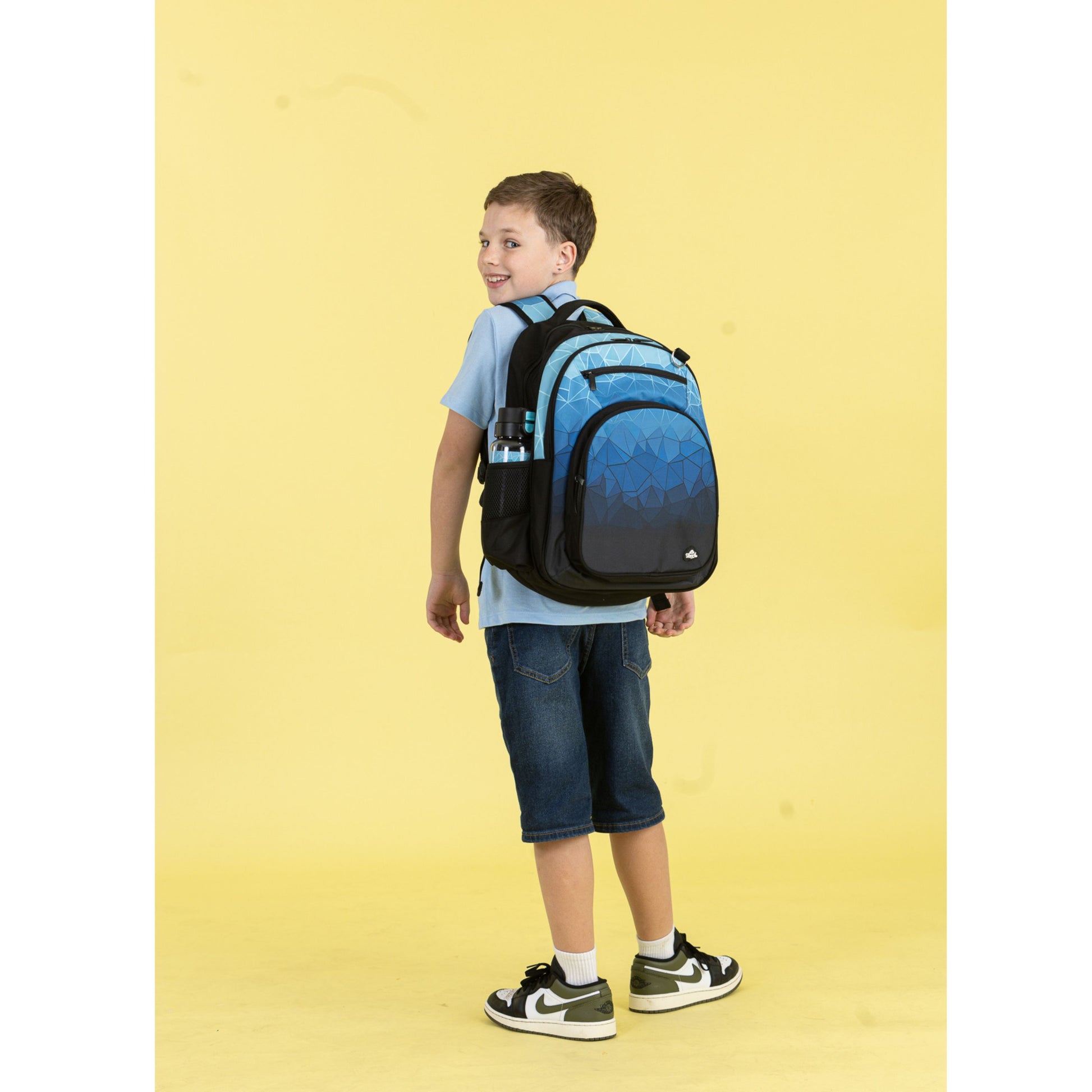 A kaleidoscope of cool! Fractal is all about funky shapes and smooth ombre colours. It’s a fresh, modern look that’s just right for kids who like things a little more grown-up—but still super fun. The new Spencil backpack design for an even smarter look - the same generous size with all the awesome features kids need to make their every day! Made with same Spencil though and to the highest Spencil quality that has made our backpack a favourite choice for kids and parents alike. This Big Backpack sports a water bottle compartment, side zip compartment perfect to hold a phone, inner padded pocket for a laptop/tablet and D-loop and lobster clips for bag tags and clipping coin pouches and wallets. This bag is both super cool AND practical. KEY FEATURES Dual drink bottle sleeves Padded adjustable shoulder straps 4 zipped compartments (2 main compartment with double zip) Padded computer compartment fits up to a 15" laptop 'D' loop keychain attachment Protective lining Padded carry handle Padded back & base of backpack Write on name label (inside at back) CARE INSTRUCTIONS The Spencil Big Backpack is machine washable. We recommend machine washing only sparingly (once or twice a year) to give your backpack the longest life. For the best protection, put it in a washing bag or pillowcase before it goes in the machine. In between washes, use a wet sponge to clean out all the pockets. The bag should be dried thoroughly, best in the sun, before being packed and used again.