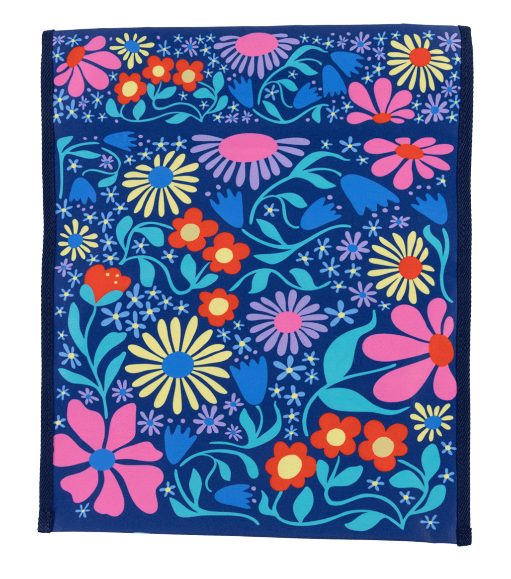 "Bright, bold, and blooming with personality! Flower Fun is full of colourful petals dancing on a deep navy background—perfect for kids who love to stand out with a splash of playful style. It’s a floral fiesta made to turn heads! The Spencil Homework Bag is the perfect companion for students, offering durable protection for books, folders, and school supplies. Made from water-resistant, PVC-coated nylon, it's designed to withstand daily wear and tear while keeping contents safe and dry.
