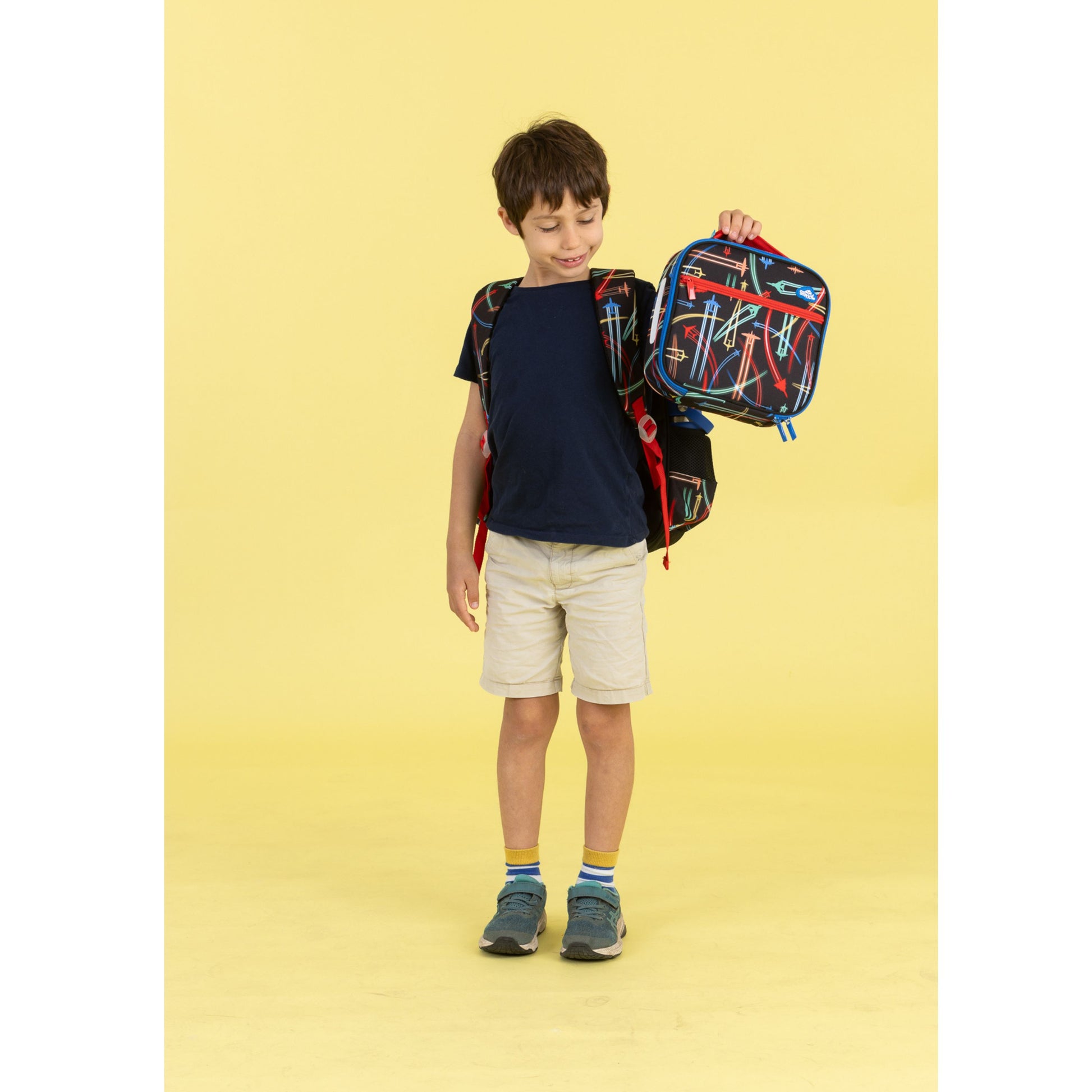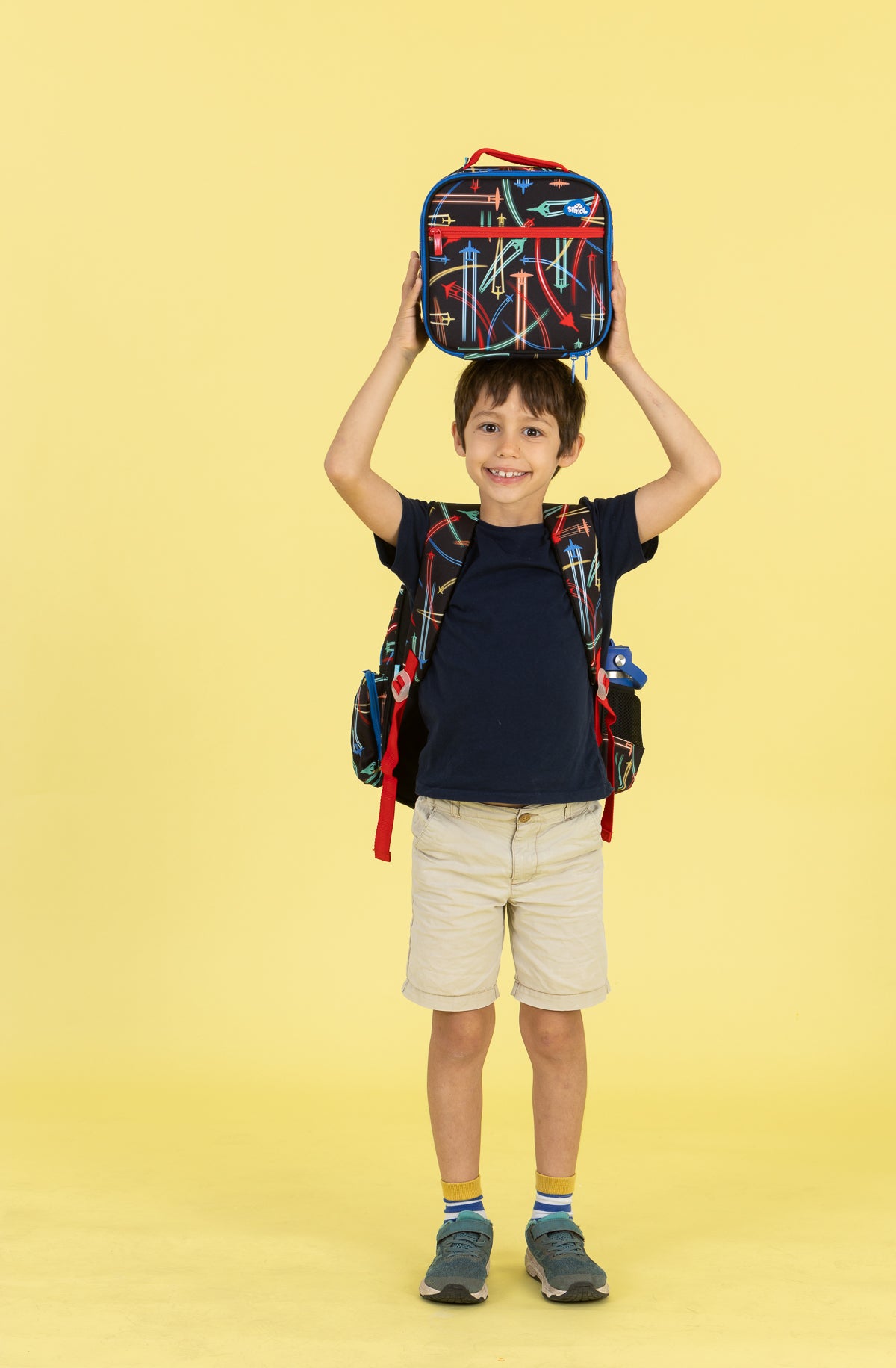 Ready for take-off? Jet Planes is bursting with bold colours and high-flying fun! Zooming across a jet-black sky, these speedy planes leave streaks of colour wherever they go. Perfect for little adventurers with big imaginations! Keep your little one's food fresh (and fun!) with this super cute lunch bag designed for the littlest kids! It's perfect for fitting the Spencil Little Bento Box and Little Chill Pack with room to spare for fruit or small containers! With aluminium food-safe silver lining, a back zip pocket that perfectly fits the Little Chill Pack, an outside name card pocket and an additional inside pocket for 'Love Notes', this is your go-to lunch bag for school and play! KEY FEATURES Machine washable Aluminium food-safe insulated lining to keep contents fresher for longer Front zip pocket Dual zip main compartment - easy to open and close Back zip pocket that perfectly fits the Little Chill Pack Thicker, padded handle Outside clear name card pocket Inside pocket for 'Love Notes' 1-compartment mesh pocket inside lid with velcro seal Made with long-lasting durable fabrics Fits the Spencil Little Bento Box Weight: Approx. 215 grams CARE INSTRUCTIONS Wipe with a damp cloth between uses to keep fresh Leave open on a drying rack or line overnight to dry out completely Machine washable - separately on a cold, delicate cycle Use regular detergent Don't forget to remove the name and note card Dry in the sun, with print facing upward Don't use fabric softener, stain remover or bleach Not suitable for tumble dryer or iron Optional: for extra TLC on the metal zippers you can also use a wash bag or pillow case