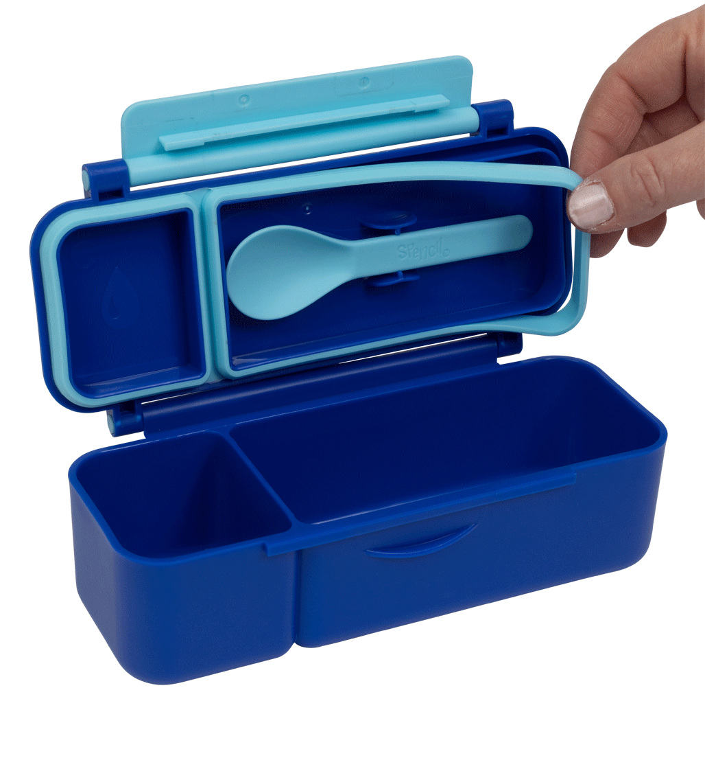 Made from food-safe materials free of BPA, PVC, and phthalates, it’s perfect for worry-free snacking. With leak-proof sections, a removable silicone seal for easy cleaning, and a dishwasher-friendly build, it’s as practical as it is durable - ready to stand up to the daily demands of school, kindy, day care or even Munch & Move activities. The little fingers-friendly latch and clip-in spoon make it ideal for little hands and on-the-go adventures.