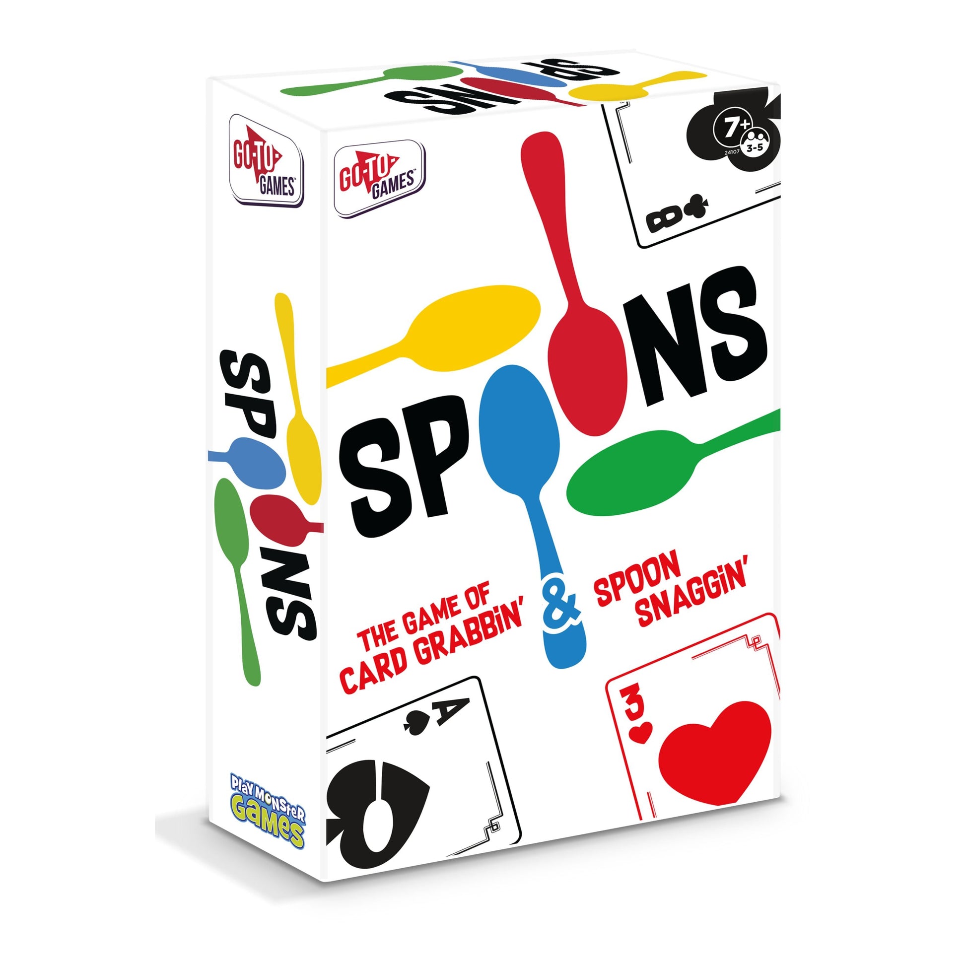 Race to get four-of-a-kind in your hand and snag a spoon to stay in the action. Once a spoon is grabbed, anyone else can grab a spoon. Play in rounds eliminating players until the final round where 2 players face off against each other. The player to grab the last remaining spoon is the winner! Ages 7+
