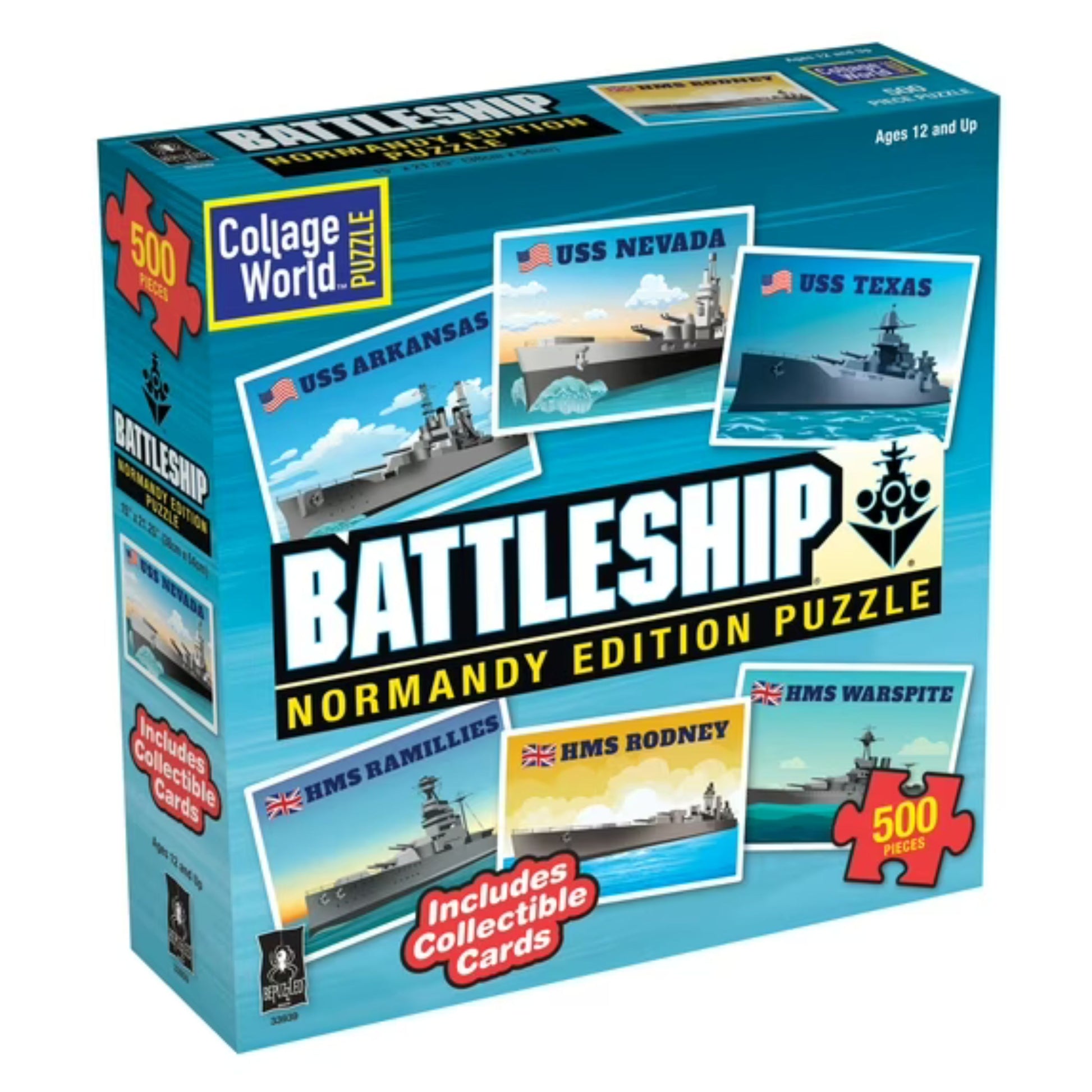 Introducing the Battleship Collage World Normandy Edition 500 pc. Puzzle classic WW2 battleships reimagined with Normandy invasion theme