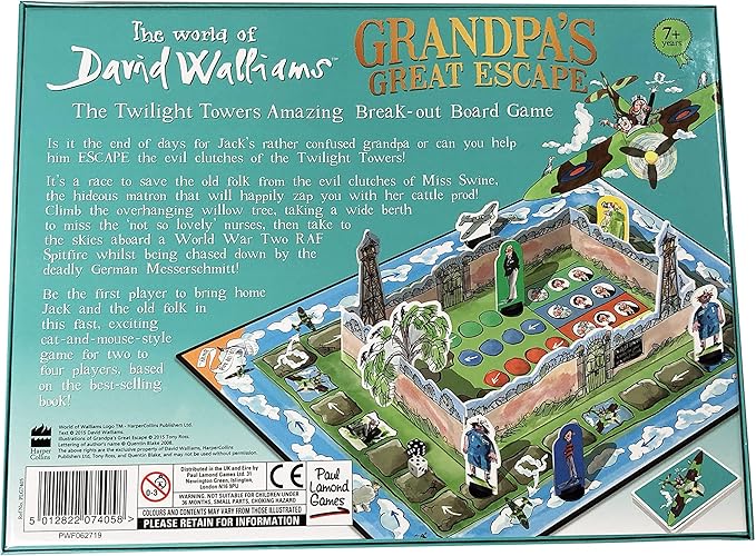 It’s a race to save the old folk from the evil clutches of Miss Swine, the hideous matron that will happily zip you with her cattle prod! Climb the overhanging willow tree, take a wide berth to miss the ‘not so lovely’ nurses, then take to the skies aboard a World War Two RAF Spitfire whilst being chased down by the deadly German Messerschmitt! Be the first player to bring home Jack and the old folk in this fast, exciting cat-and-mouse style game for two to four players, based on the best-selling book from David Walliams.